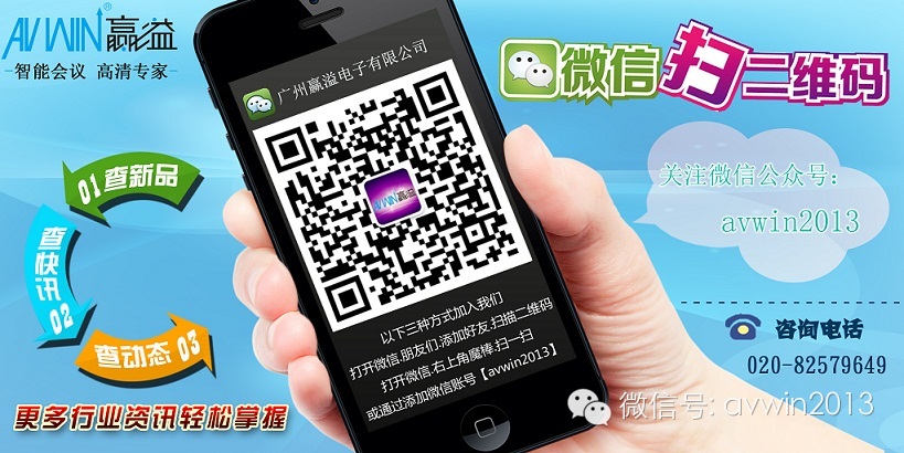 AVWIN赢溢一直致力于高清传输处理设备的研发和生产,结合原来的中央控制技术、智能会议技术和普通音视频信号处理技术,为全球客户提供一整套完善的智能会议展览、大中型指挥中心、各种多媒体会议中心等解决方案,涉及各行各业多个领域。我们打造专业化产品,提供专业化服务。从而达到使视频会议智能化、人性化、操作简单、功能强大,扩展灵活、配置方便、集中控制的目的,使音视频达到完美的效果。凭借人性化的操作界面,稳定的性能,强大的功能得到了社会各界的一致认可和肯定。不过科技的产品日新月异,功能不断的与日更新,您既然要选购一项新的产品,就要选购当今最先进的机种,高人一等的先进产品,值得您优先拥有!